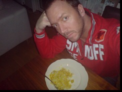 Anledningen till detta inlägg är nämligen att jag gjorde kyckling med currysås i tisdags, som stod klart när hon kom hem. Efter vi hade ätit ställdes detta in i kylen, så man kunde köra det som lunch. Detta åt jag idag, smakade förträffligt. Men Jossan gapade stort om att detta absolut inte gick att äta om det stått mer än 1 dag i kylen... Tror förvisso det är ett släktdrag, för det är flera i släkten som har en enorm respekt/skräck för mat! ;) Kan dock intyga att kyckling och currysås som stått i kylskåpet i 2 dagar går utmärkt att äta!