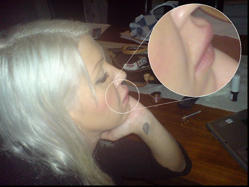 Åååååh, jag riktigt mös när jag skrev den här rubriken! Vi har diskuterat förut om hur viktig bloggrubriken är för att fånga läsarna. Den här lär ju garanterat få en och annat att sätta hjärtat i halsgropen! ;) Nej, jag har verkligen inte slagit min vackra Josephine. Däremot har hon återigen kört in en massa restylane i överläppen, denna gång en hel milliliter. Så hon ser ut som hon fått en redig smäll rakt på truten. Svullnaden lägger sig efter ett tag och då ser det genast bättre. Nu kan man ju tycka att en sådan skönhet knappast kan behöva några ingrepp, men vacker blir vackrare.