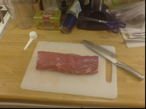 Middagen igår gick nästintill helt utan anmärkningar. Ska man vara petig så var det lite för lång väntetid på förrätten samt mellan förrätt och varmrätt, men det är ju som sagt jag som är petig. Hittade en fin bit oxfilé på Gränby centrum, köpte en hel rackare på 1,7 kg så vi kunde frysa in lite till senare. Putsade till den mittersta biten och gjorde den klar för ugnen. Sen var det skala och hyvla potatis till förbannelse.