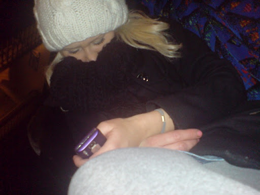Vi tog det modiga beslutet att istället ta bussen, vilket faktiskt inte alls var så farligt som man skulle kunna tro... Riktigt trevligt när man är så många och lite på lyset... Josephine min lilla trötta flicka valde att ta en liten powernap, så kameratelefonerna gick varma för en stund. Håller på och för över bilderna från min telefon i skrivande stund, så vi får se vad jag kan bjuda på utan att behöva vara elak. Min flicka har ju en förmåga att se vacker ut även när hon sover. Förvisso är jag nog vackrare i sovande skick som jag ser ut nu! :) Hon fick som ni ser på bilderna agera lite barbiedocka också, vi provade olika mössor på hennes huvud...